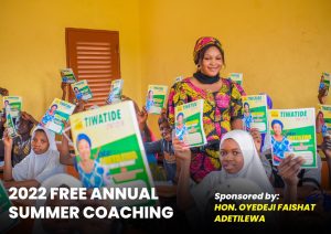 In the bid to eradicate illiteracy in Osogbo, Osun State, the Accord Party candidate for Osogbo State Constituency, Hon. Oyedeji Faishat Adetilewa, has distributed free exercise books to students in the state capital, AMILOADED reports.