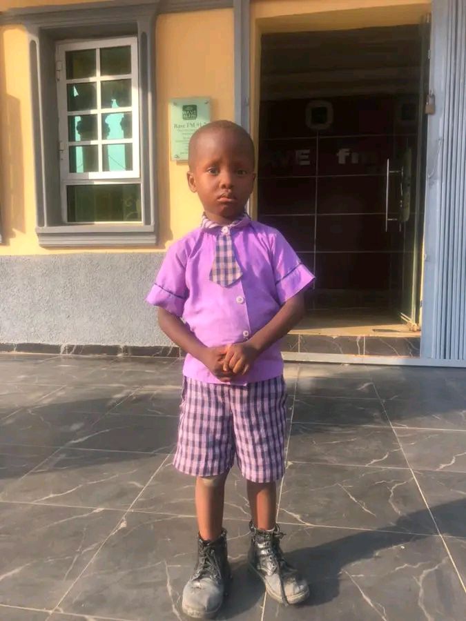 “If you know this child, recognize his parents/guardians, or have any useful information, please kindly come to RAVE 91.7 FM Radio Station, Osogbo, Osun State, or contact us immediately.”