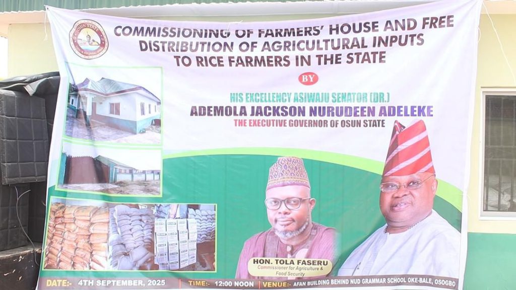 The Osun State Government has commissioned the State Farmers’ House and distributed free inputs to rice farmers, reaffirming its commitment to agricultural transformation and food sufficiency.