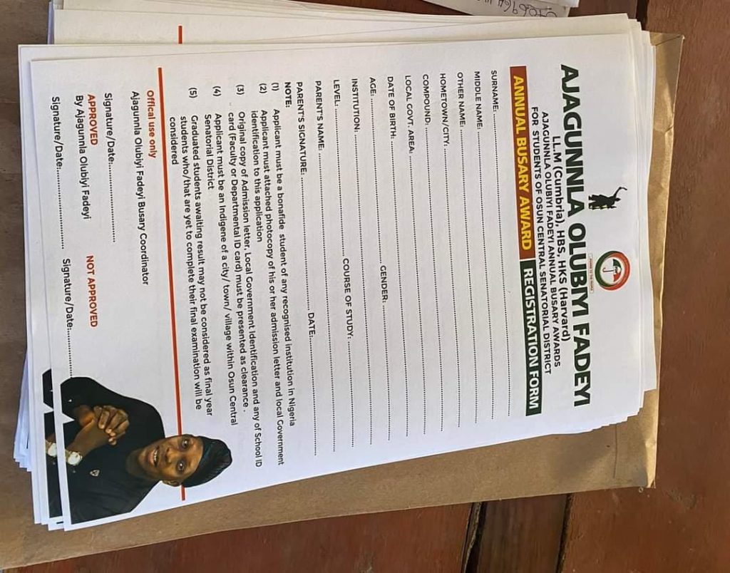 Ajagunla Olubiyi Fadeyi, LLM (Cumbria), HBS, HKS (Harvard); the PDP Candidate for Osun Central, has invited applications from suitable qualified students studying any course in any Nigerian universities, polytechnic and or Colleges of Education.