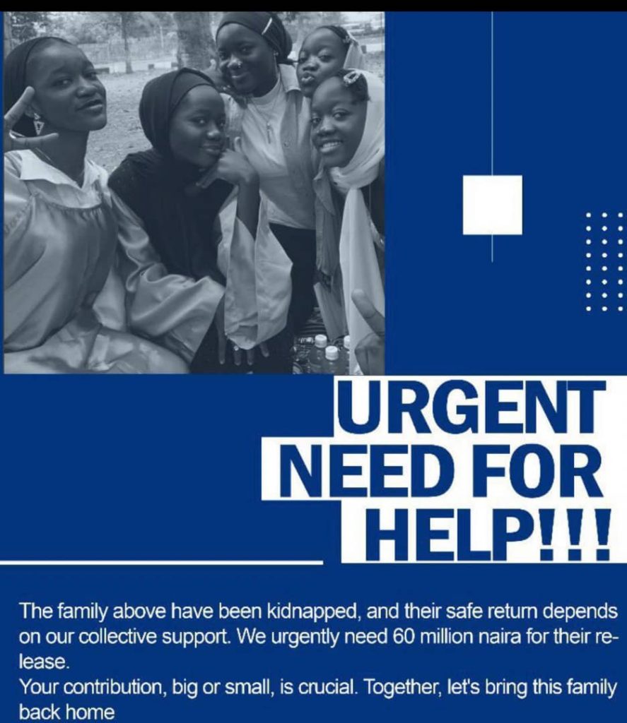 Nigerians on social media have started a fundraising campaign for the ransom to seek the release of a lady identified only as Nabeeha and five of her sisters who were kidnapped by kidnappers in their house in Abuja on January 2, 2024.
