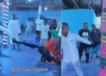 The woman, seemingly overwhelmed, remains in a submissive posture as the pastor continues his intense approach. Another part of the video showed the moment the lady fell unconscious on the floor. Immediately, the pastor gave her a thunderous slap on her back.