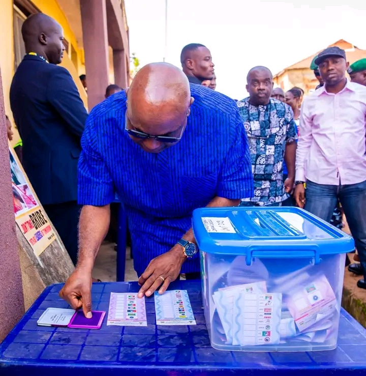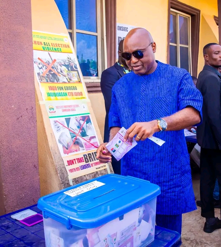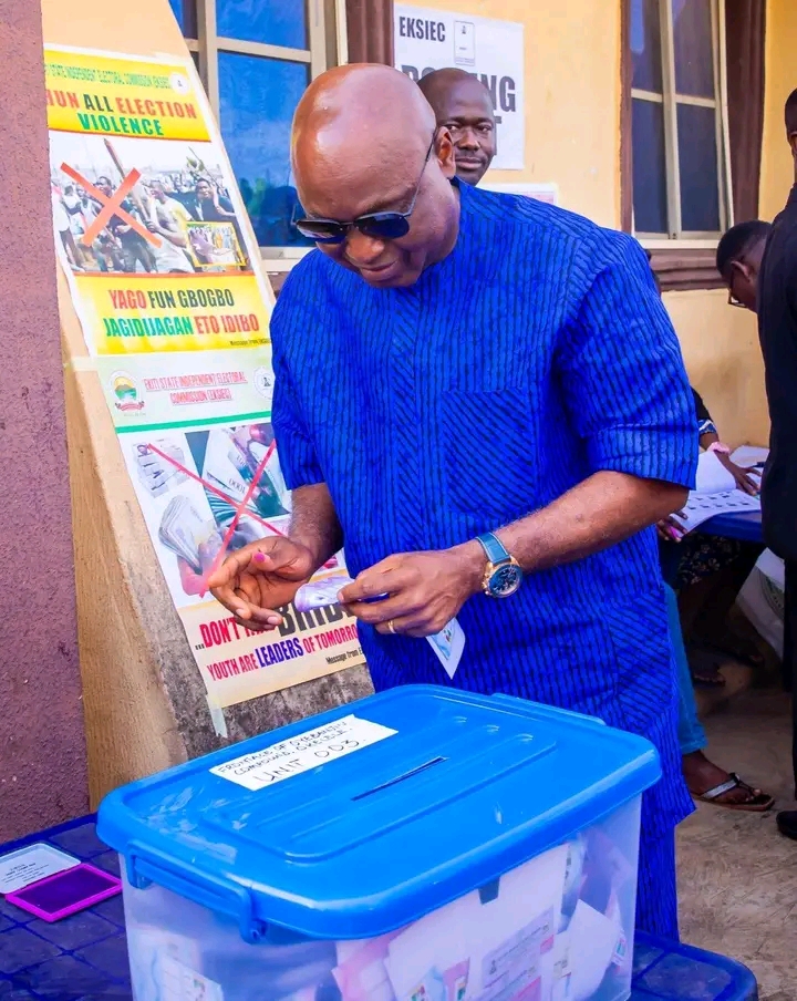 The Governor of Ekiti State, Biodun Oyebanji, voted at Ikogosi in Ekameta LCDA during the local government election conducted across the state on Saturday.