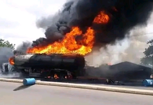 A fully loaded petrol tanker burst into flame at Ijabe, a community in Odo-Otin local government area of Osun State, creating panic among residents of the area