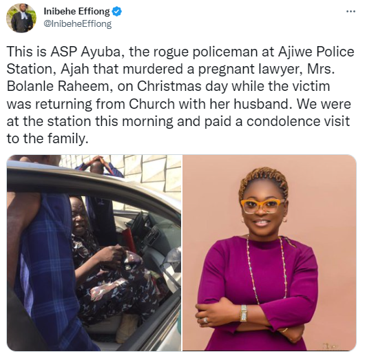 However, Twitter followers have continued to react angrily to the death of the pregnant female lawyer, Bolanle Raheem, allegedly killed by an Assistant Superintendent of Police in Lagos.