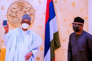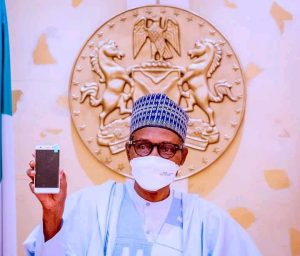 Buhari showed off the phone at a virtual Federal Executive Council Meeting on Wednesday.