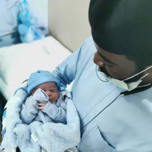 The proud father, Prince Godswill shared the photos of the newborn on his Instagram page.