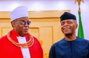 During his visit to Delta state, the vice-president met with Obi Edozien, the Asagba of Delta at his palace, as well as APC stakeholders in the state.