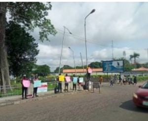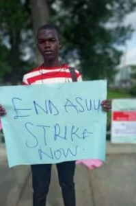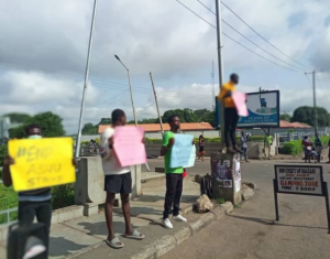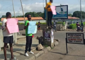 The students gathered in front of the University of Ibadan with various inscriptions on their placards calling for an end to the ASUU strike.