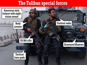 A member of the Pakistan Defence website told the news outlet that it showed the Taliban are no longer a bunch of farmers, but a professional paramilitary force, with one experts suggesting they were even better equipped that Pakistan’s army.