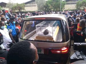 TB Joshua’s remains arrived at the church premises in the Ikotun-Egbe area of Lagos State on Thursday.
