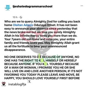 A Nigerian lady identified as Olaitan Adonis has ended it all after her boyfriend, Ola Saheed, reportedly married another woman.