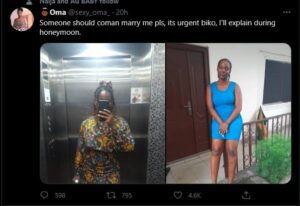 “Someone should coman marry me pls, its urgent biko, I’ll explain during honeymoon.”