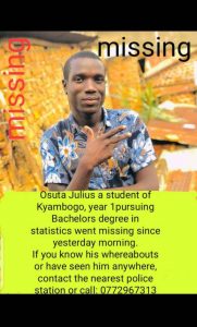 On April 7, 2022, Ugandan social media and media houses were awash with the news of the missing first year Statistic student.