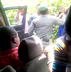 WE ARE NOT EVEN SAFE WITH THE POLICE… This happened right now on my way to Benin,after the Army check point close to mercy land, police stopped our bus and asked this innocent looking guy n fine girl to come down, searched d guy from head to toe and even searched his phone…. Then searched the girl’s handbag and asked her to pour the content of her travelling bag on the floor (grass), when she insisted that it’s just her pant, clothes and cosmetics that is inside, he started harassing her and insulting her and saying we the passengers are not going anywhere admits our pleadings….. She finally poured the clothes on the floor and insisted that she cannot pour her pant on the floor, then he said the he was no longer looking at it again that we should wait and that she is too small and ugly to be talking to her, before we knew he started slapping her and even raised gun on her.. We couldn’t get the full video because some people were saying they will seize our phones.