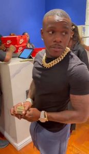 Dababy was also captured at the bank withdrawing some money as fans go the extra mile to hail him and he sprayed them in return.