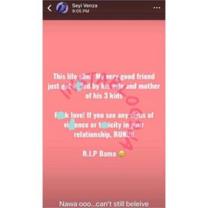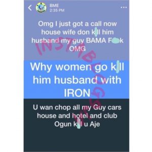 A Lagos-based hotelier, identified as Bama, has reportedly been k!lled by his wife for allegedly impregnating another woman in Abule-Egba area of the state.