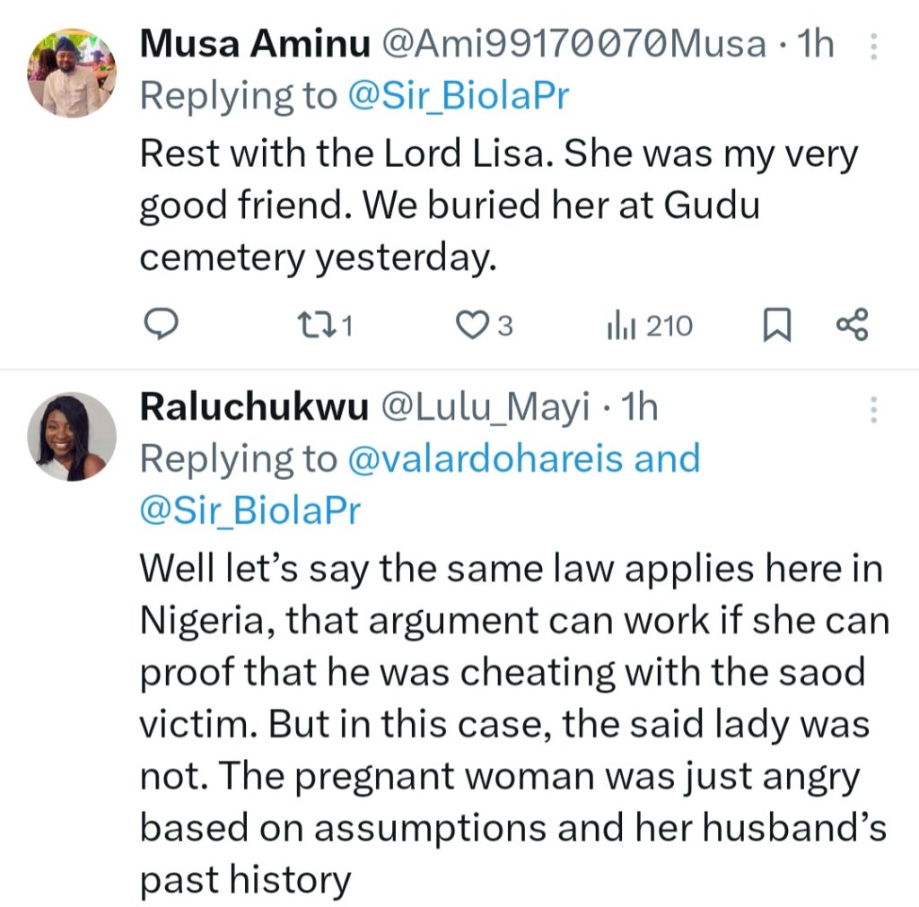 They added that Lisa has been buried at Gudu cemetery.