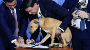 Several dogs were brought to the ceremony, including that of the Bolsonaro family, Nestoras well as a pit bull whose hind legs were cut off with a machete in July in a city in southeastern Brazil.