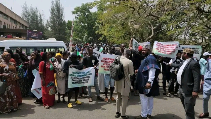 The protesters, who converged on the headquarters of the Central Bank of Nigeria and the office of the Attorney-General of the Federation, passed a vote of confidence in the CBN urging them not to back down.