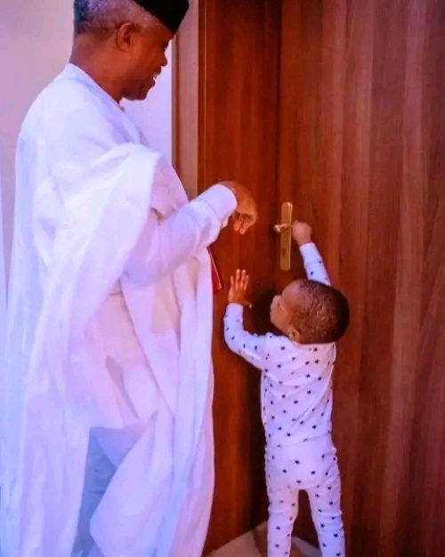 Osinbajo shared some pictures of adorable moments with his grandchild on his Facebook page on Thursday.