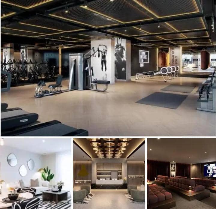 The house boasts a fully equipped gym, furnished living spaces, and even a cinema room.