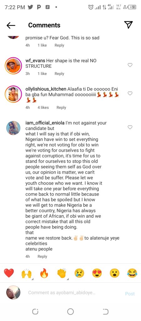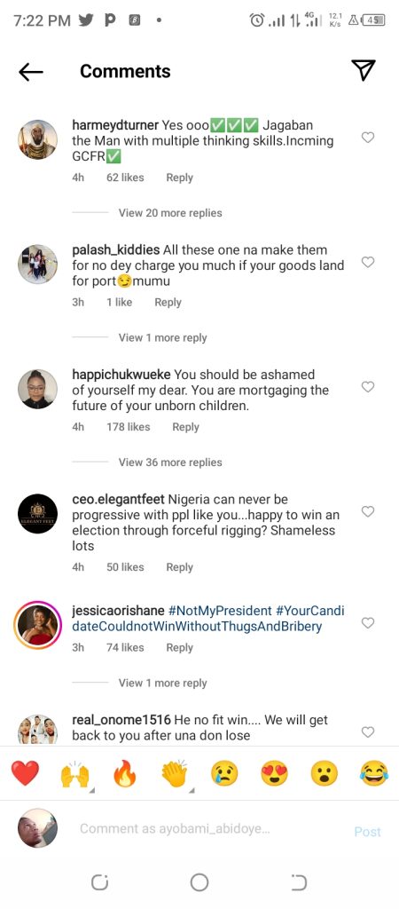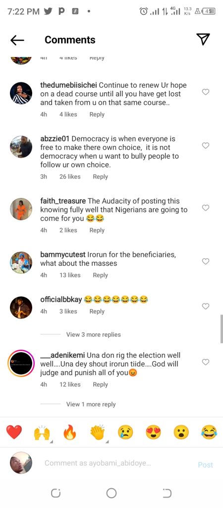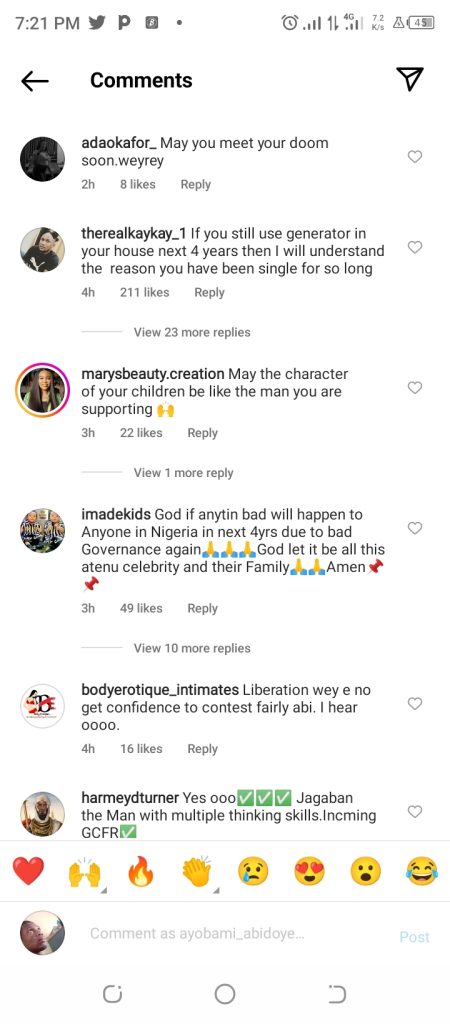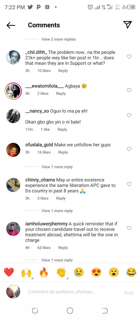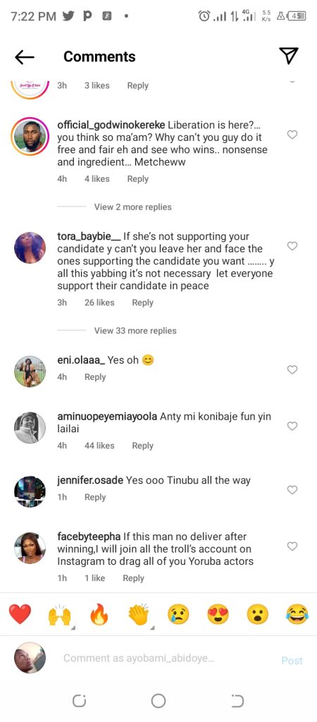 The actress, who is a supporter of Tinubu, posted a picture of a Kampala, a fabric with a tie and dye pattern, on her Instagram story on Sunday.