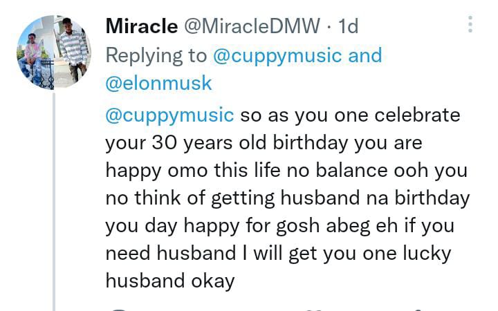 DJ Cuppy has asked Elon Musk, the richest man in the world, for a gift as she marks her 30th birthday.