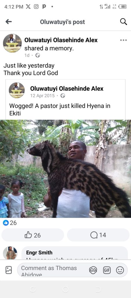 Reactions As Ekiti Pastor Celebrates 10 Years Of Killing “Hyena”