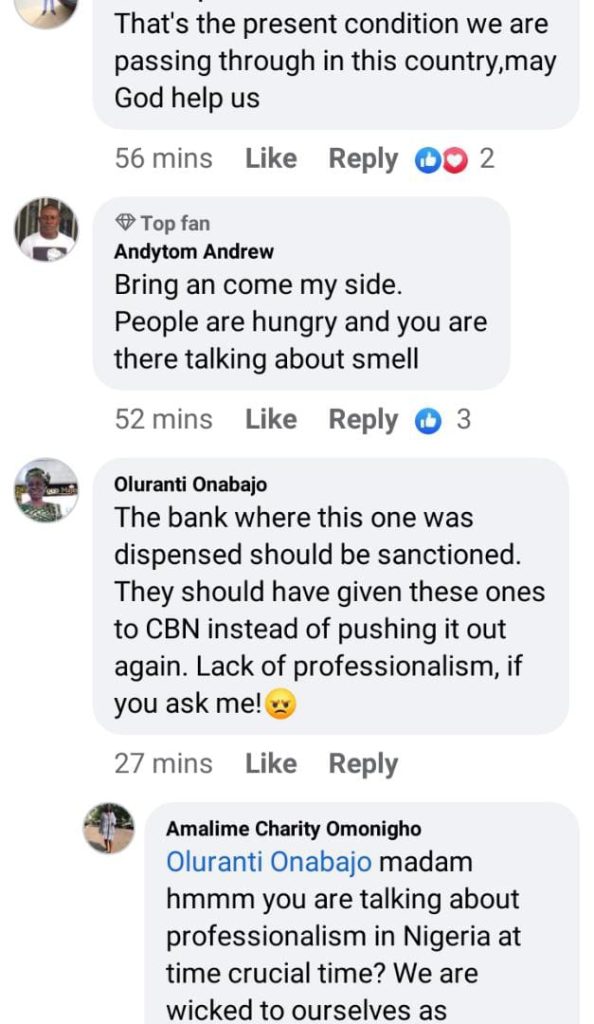 He claimed that the N200 notes he received from the bank were so dirty and smelled bad that he had to wash his hands.