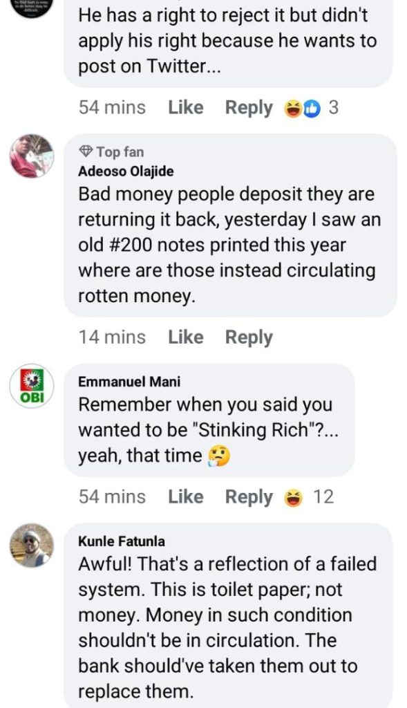A Pharmacist identified as Pharaoh, via his Twitter handle on Monday lamented about the poor condition of the N200 old notes he received from a bank.