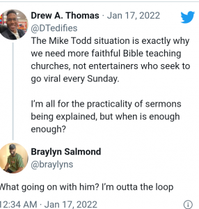 Pastor Michael Todd who leads the Transformation Church in Tulsa, evoked an exaggerated response from his congregation throughout his service on Sunday after wiping his spit on the face of a parishioner who volunteered.