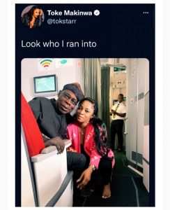 “Toke Makinwa, you ran into ex-president Obasanjo in a private plane barefooted or what? This your above picture looks questionable cause the pic looks comfortably taken & the pilot behind doesn’t seem surprised to see you there; His reaction speaks volumes. Nice pic anyway. No offense,” a user wrote.