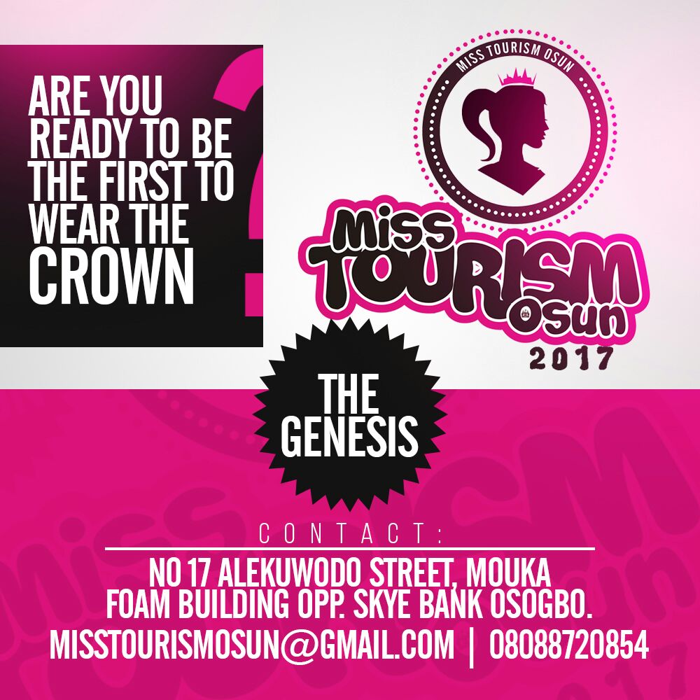 Registration for Miss Tourism Osun ends in December 15th, 2016.