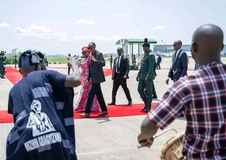 The photos were captioned, “President Kagame has arrived in Abuja, Nigeria, where he will attend the swearing-in ceremony of President-elect Bola Ahmed Tinubu alongside other Heads of State from around the world.”