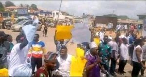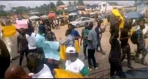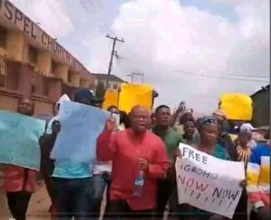 In a video uploaded by Igboho’s spokesman, Olayomi Koiki, on his official Facebook page on Wednesday, the protesters converged at Sunday Igboho’s house in Ibadan and marched around major streets in the ancient city to protest the detention of Igboho.