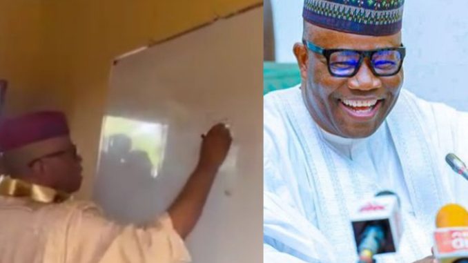 Senate President Godswill Akpabio took an unconventional turn on Sunday, May 18, during a series of project inaugurations in Akwa Ibom State by stepping into a classroom to teach students at a newly constructed school.