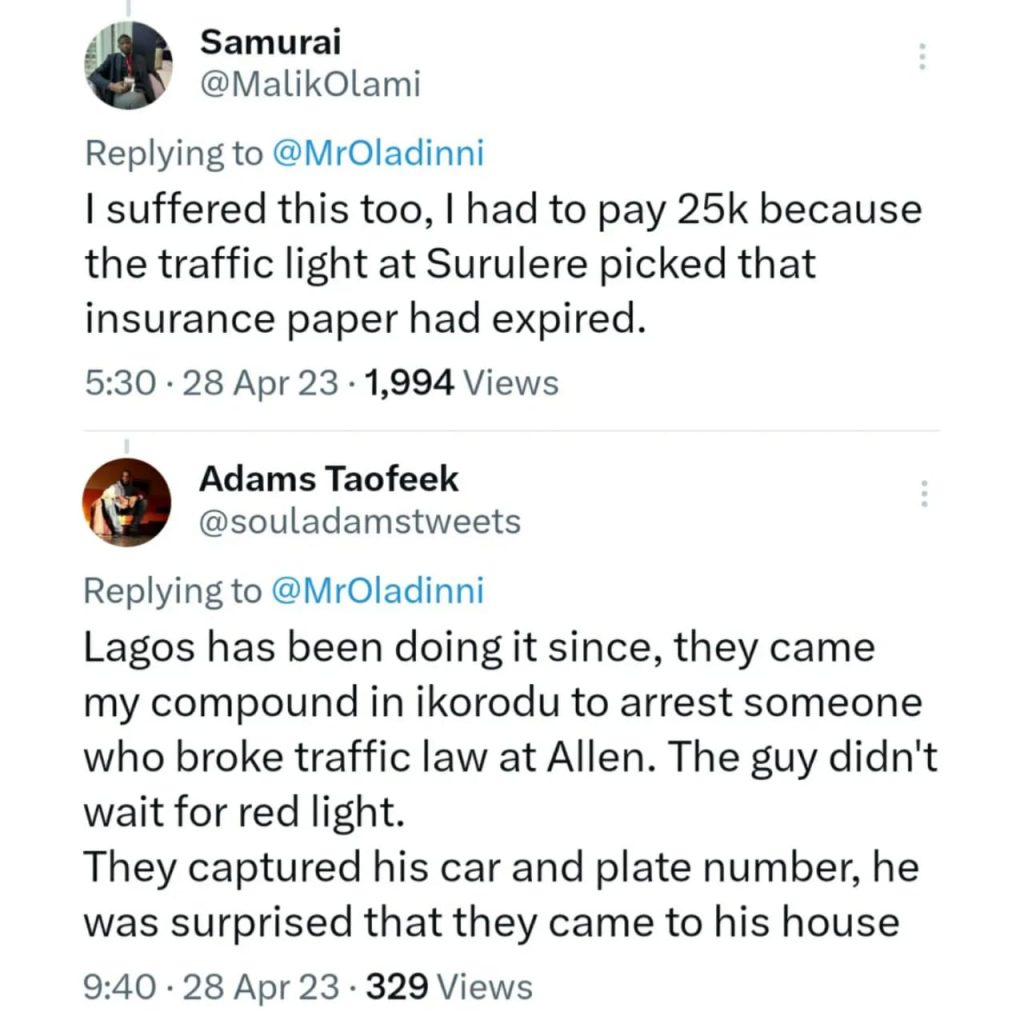 His tweet elicited reactions as some other people shared their experiences of how the cameras caught them breaking the law and fined them.