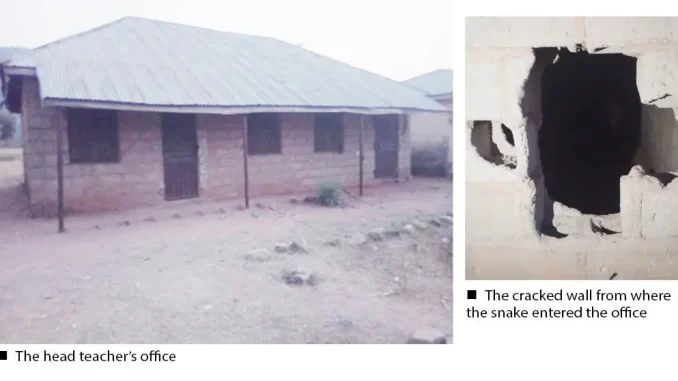 “The unfortunate thing is that when I received information about the incident, members of the community discovered that the snake had passed through a broken wall into the head teacher’s office,” Aliyu said.
