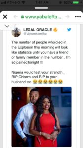 There are reports on social media that a beautiful couple met their untimely death in the explosion.