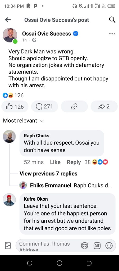 He criticized social media personality and influencer, Martins Vincent Otse, known widely as VeryDarkMan (VDM), stating that he should apologize to GTB for making defamatory remarks and expressed mixed feelings about His arrest.