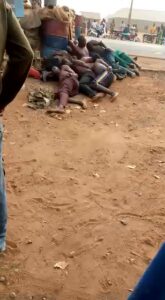 The people you are seeing are kidnappers arrested in Niger state. Army personnel disguised themselves as passengers in commercial bus patrolling black spots. Kidnappers came out from the bush to attack them. Unfortunately for them, they were all arrested.