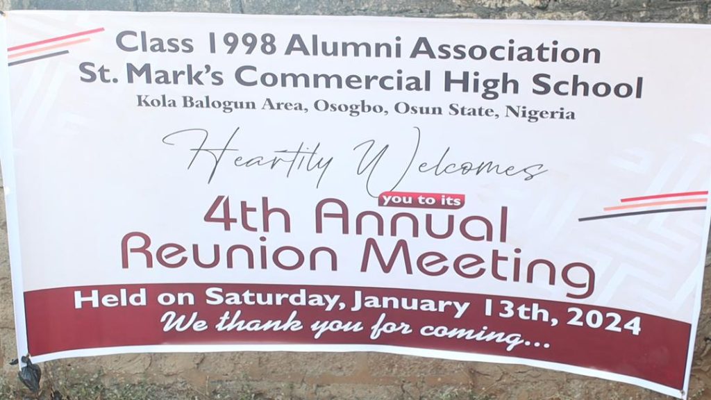 The National Alumni Association of St. Mark Commercial High School, Osogbo’s Chairman of the Board of Trustees (BOT), Pastor Samuel Adesoji, spoke at the reunion’s fourth anniversary and praised Lateef Sunkanmi for being an excellent organizer who follows up with each member.