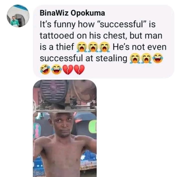 A closer look at his photos shows that the suspect tattooed the word ‘SUCCESSFUL’ on his chest.