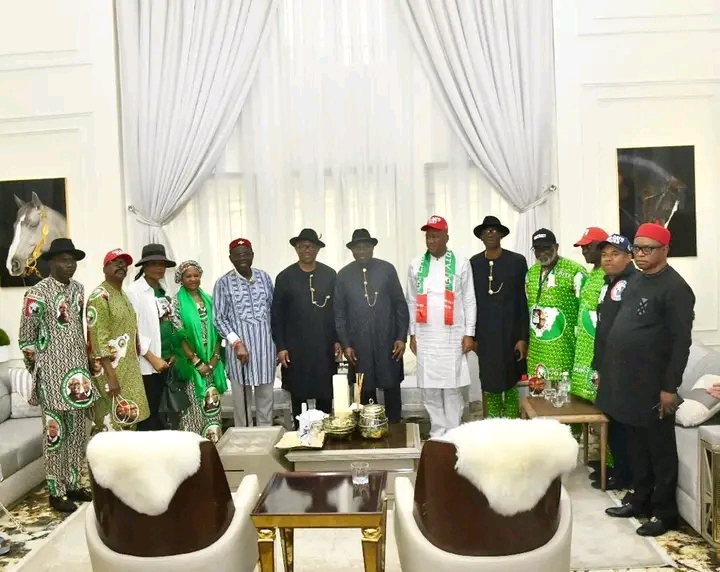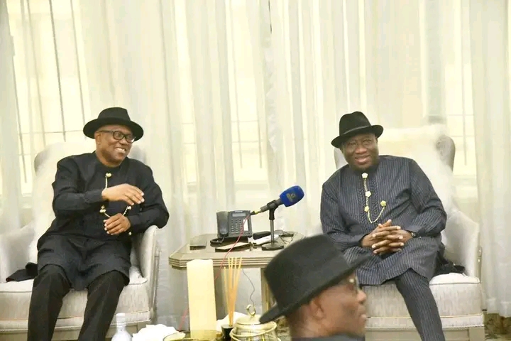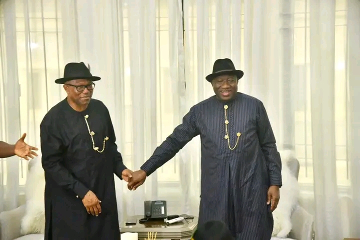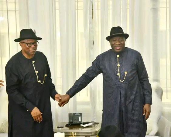 Presidential candidate of the Labour Party, Peter Obi and former President Goodluck Jonathan Yenagoa, Bayelsa state home on Friday.