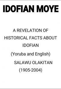 Therefore, they called Iranloye to come and fill the vacant stool; she is a female and a daughter of Obaigba and sister to Oyekuleyin. Iranloye married at Sanmora and one of her son that was born at Sanmora was Oyedokun. But when her husband died at Sanmora, she returned to Idofian, her father’s town. Her father built a house for her and she became an elder in the town. The house is what we call Oloyi today.