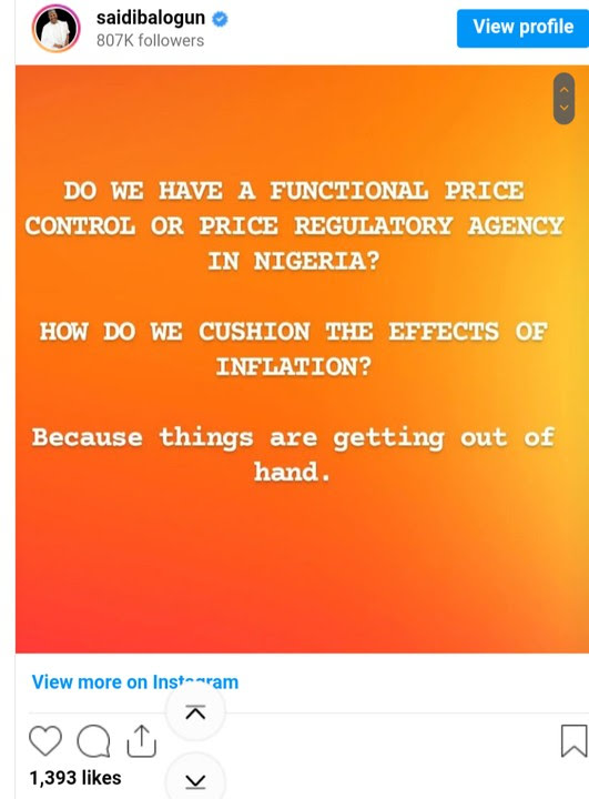 “Do we have a functional price control or piece regulatory agency in Nigeria? How do we cushion the effects of inflation? Because things are getting out of hand” he wrote