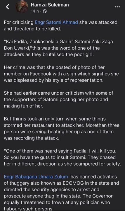 “Kai Fadila, Zankasheki a Garin” Satomi Zaki Zaga Don Uwarki,”this was the word of one of the attackers as they brutalised the poor girl.