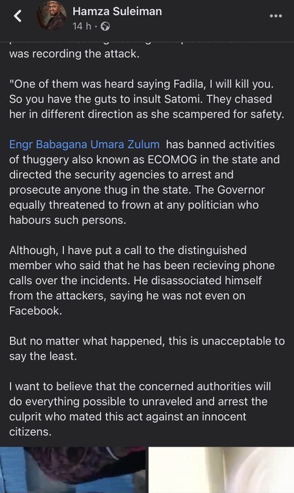 Although, I have put a call to the distinguished member who said that he has been recieving phone calls over the incidents. He disassociated himself from the attackers, saying he was not even on Facebook.