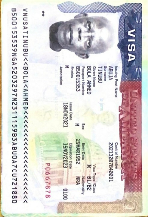 The valid American visa of the All Progressives Congress (APC) presidential candidate, Asiwaju Bola Tinubu, has made its way to the public following insinuations that the United States embassy had denied his request.